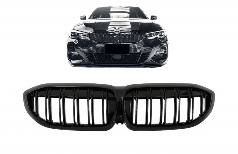 Grill DubbelSpijls Glanzend Zwart BMW G20 G21 met / zonder camerafunctie - HL Automotive