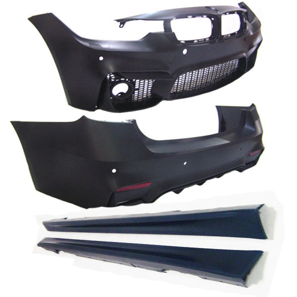 Nieuw in doos. Gemaakt van hoge kwaliteit polypropylene (PP) kunstof net als bij OEM bumpers. Geschikt voor BMW 3-serie F30 vanaf bj 04/2011 >>> . Het pakket BMW 3 serie F30 bestaat uit het volgende : – Voorbumper met PDC, zonder Koplampsproeiers en zonder Mistlampen. – Achterbumper met PDC, Diffuser met dubbele uitlaten links en rechts. – Side skirts links en rechts . Inclusief de benodigde bevestigingsmaterialen.(de Meeste Bevestingschroeven dient U van de oude bumpers te gebruiken) Gebruikt originele fittingen voor perfecte pasvorm. Geven uw Auto een luxe en strak ogende uitstraling. Bumper is klaar voor spuitwerk, wordt in primer opgeleverd.(Maar Voor betere Hechting dienen de bumpers opnieuw te gronden.) Spuitwerk We kunnen de bumperpakket kant en klaar in de juiste kleur van uw auto leveren. De bumper wordt door een erkend spuitbedrijf gespoten met de originele BMW kleur code. Meerprijs is € 935. Garantie op de lak is 12 maanden. Montage We kunnen de bumper voor u ter plekke in ons open werkplaats professioneel monteren. U kunt onder het genot van een kop koffie hier in de meeste gevallen op wachten. Meerprijs is € 450.Installatie handleiding is niet inbegrepen. Wij raden u aan dit product door een professional te laten installeren. Gelieve de bumper eerst te passen, voordat u deze gaat spuiten.