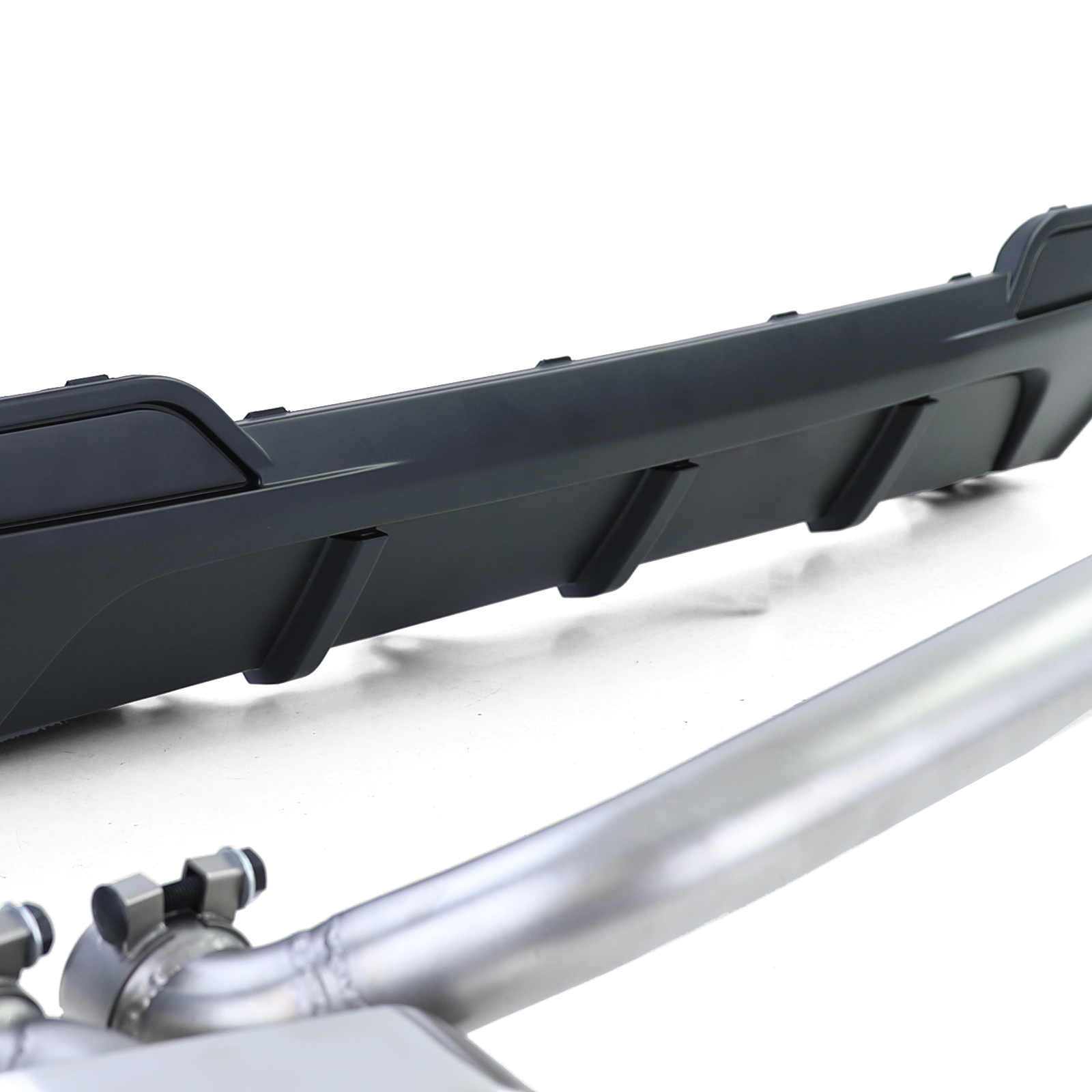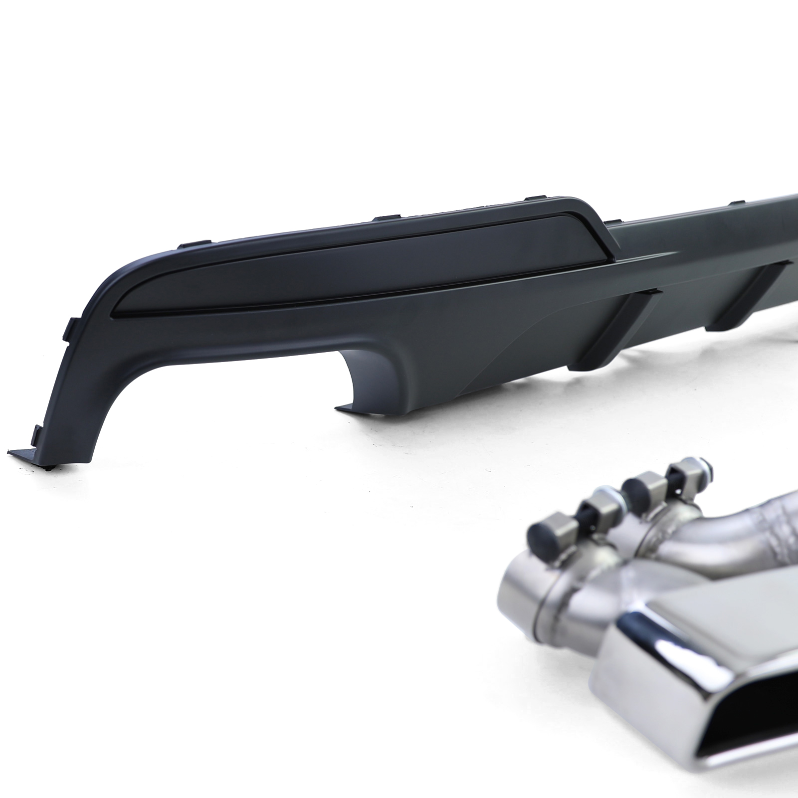 Upgrade de look van je BMW F10 F11 518d 520i 520d 525d 528i 530i 530d met deze achterdiffuser in een matte performance-look en een V8-uitlaatconversie met hoekige uitlaat aan beide zijden. Geen laswerk nodig en eenvoudige installatie op de originele bevestigingspunten van het voertuig. De diffuser is gemaakt van hoogwaardig ABS-kunststof en kan volledig worden overschilderd. Dit product is alleen geschikt voor voertuigen met M-pakket bumper en modellen zonder trekhaak en AdBlue. ART: 41528